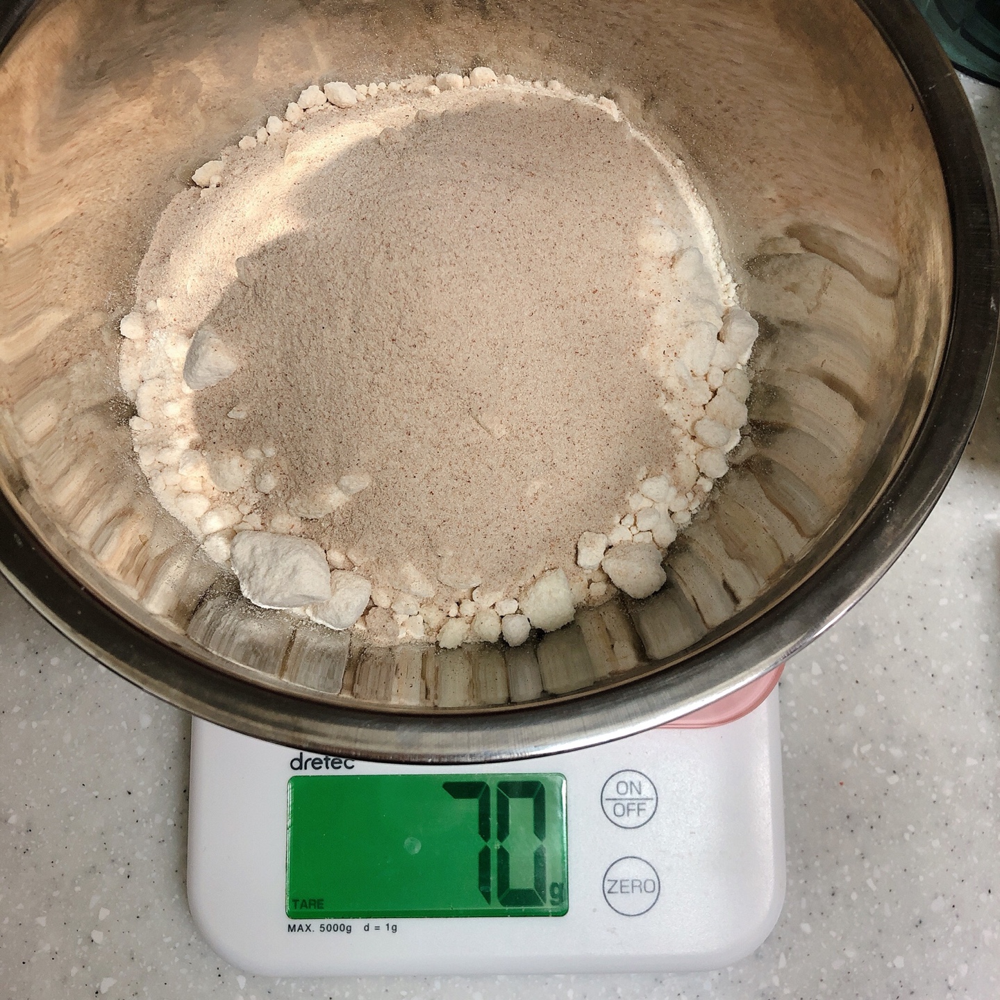 (코코넛 가루에서 zeroing을 깜빡해서 70g)