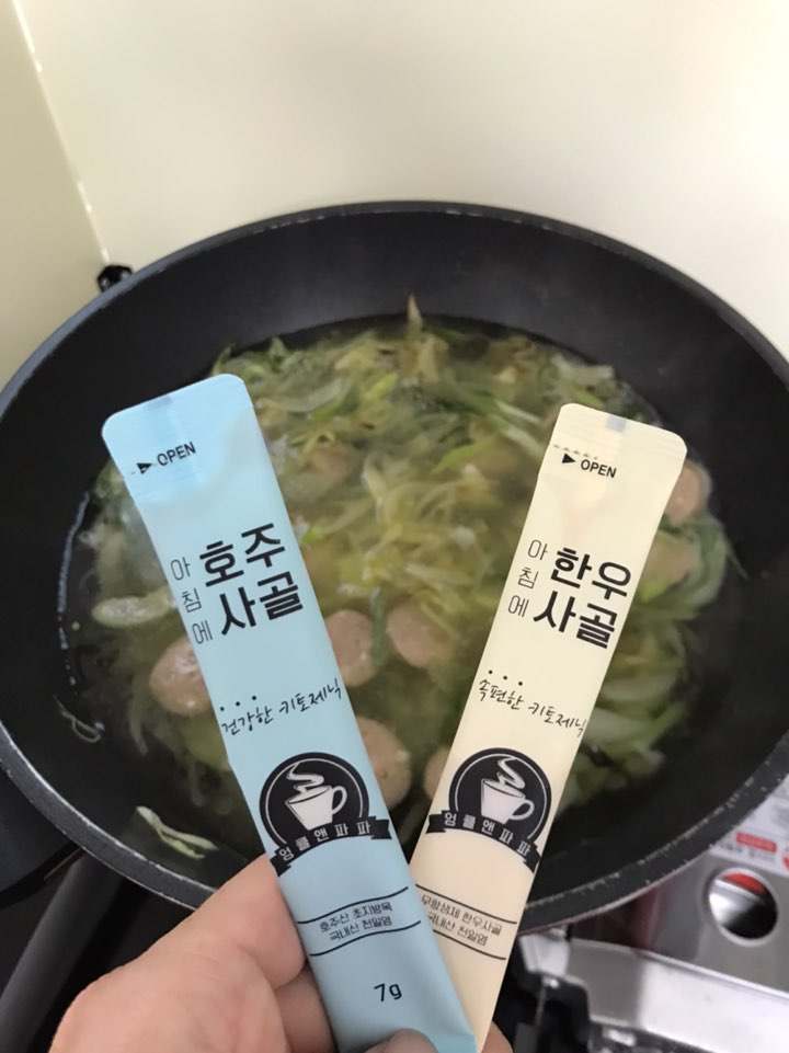 사골 액기스를 푼 뒤,